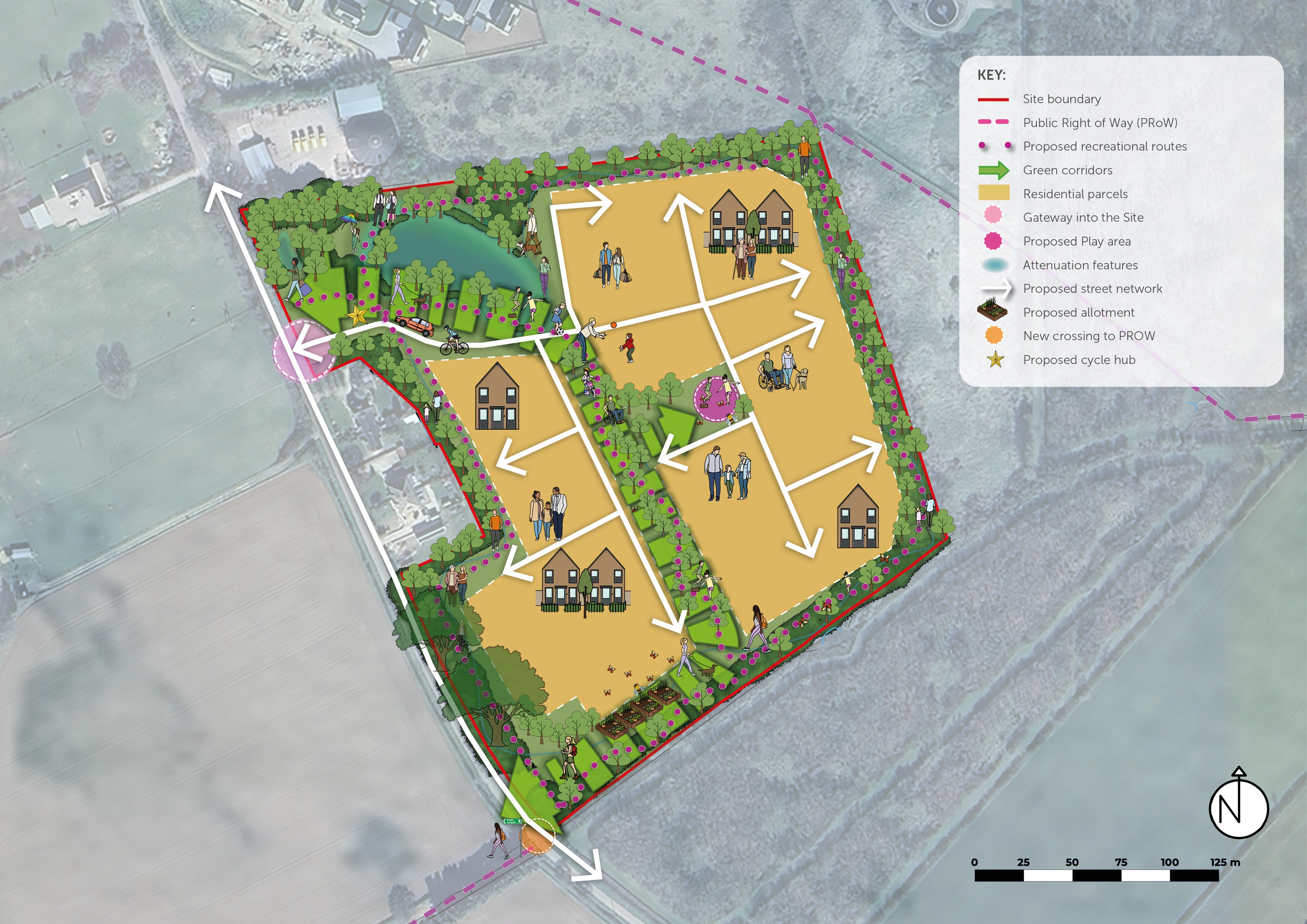 The proposals include up to 150 new homes (including affordable housing) and public open space.